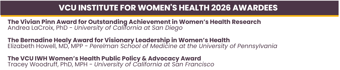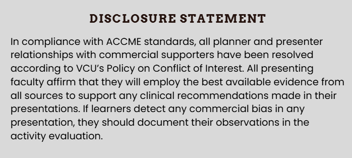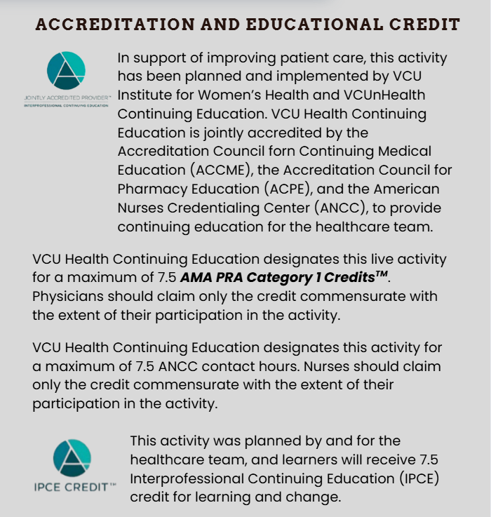 Registration fee, minus a 15% non-refundable administrative fee, will be refunded only if written notice of cancellation is received via email to healthofwomen@vcuhealth.org on or before April 29, 2026. There will be no refunds after that date.