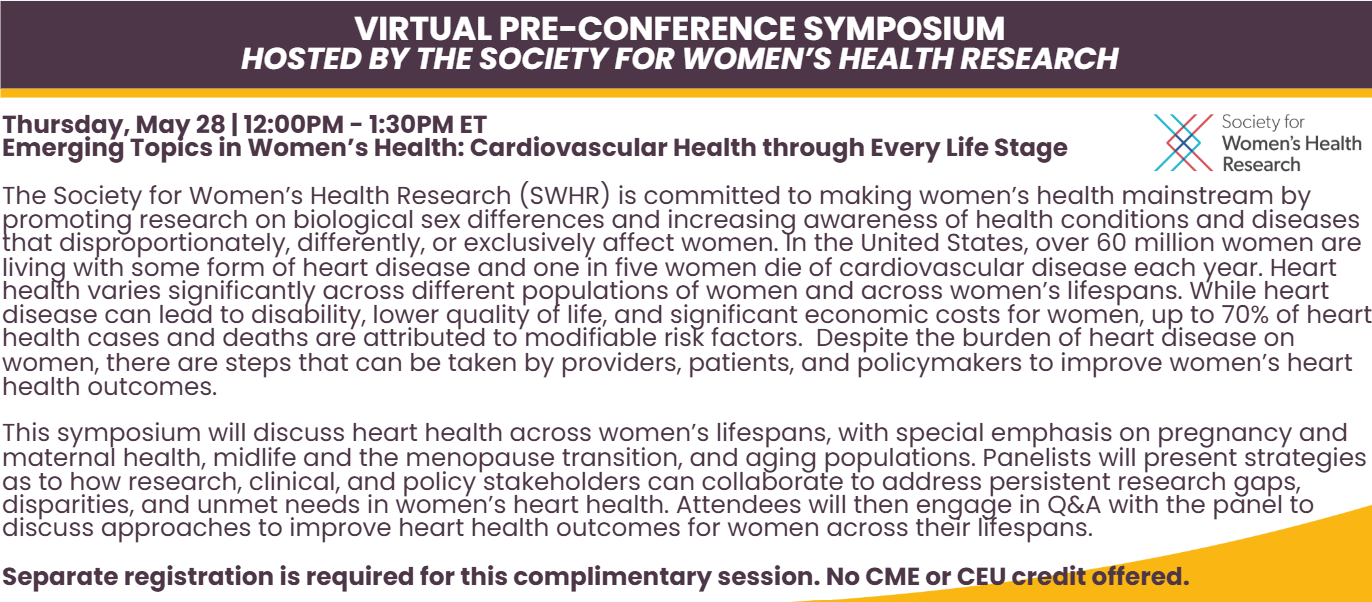 - Describe recent advances in screening and treatment of disorders related to women's health, as it relates to cardio-metabolic and reproductive health.